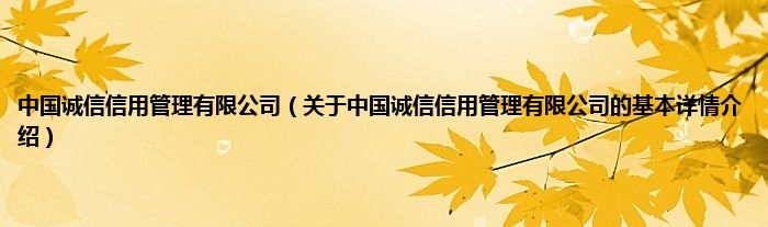 本文关于中国诚信信用管理有限公司的基本详情介绍就讲解完毕,希望对大家有所帮助。