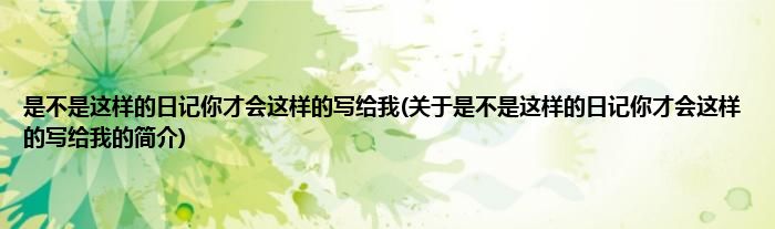大家好,是不是这样的日记你才会这样的写给我,关于是不是这样的日记你才会这样的写给我的简介很多人还不知道,现在让我们一起来看看吧!