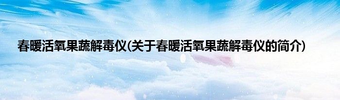 本文关于春暖活氧果蔬解毒仪的简介就讲解完毕,希望对大家有所帮助。