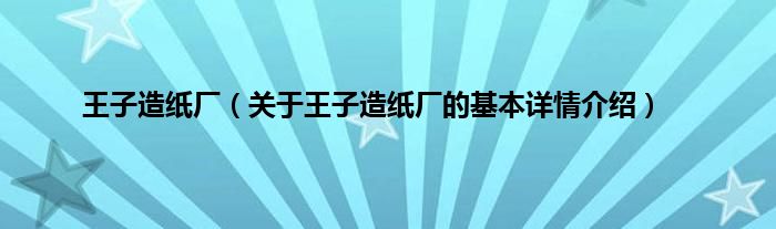 王子造纸厂(关于王子造纸厂的基本详情介绍)