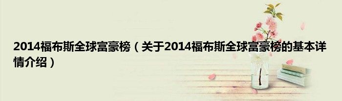 本文关于2014福布斯全球富豪榜的基本详情介绍就讲解完毕,希望对大家有所帮助。