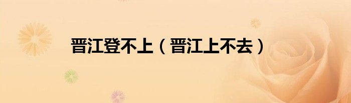 大家好,小问来为大家解答以上问题。晋江登不上,晋江上不去这个很多人还不知道,现在让我们一起来看看吧!
