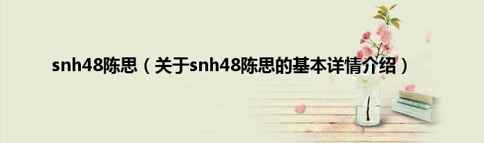 本文关于snh48陈思的基本详情介绍就讲解完毕,希望对大家有所帮助。