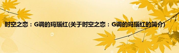 大家好,时空之恋:G调的玛瑙红,关于时空之恋:G调的玛瑙红的简介很多人还不知道,现在让我们一起来看看吧!
