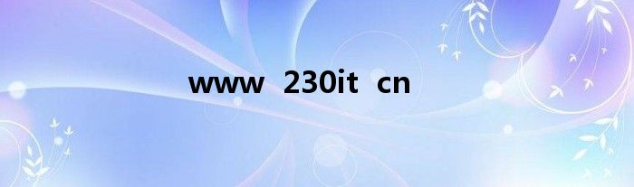 大家好,小问来为大家解答以上问题。www 230it cn这个很多人还不知道,现在让我们一起来看看吧!
