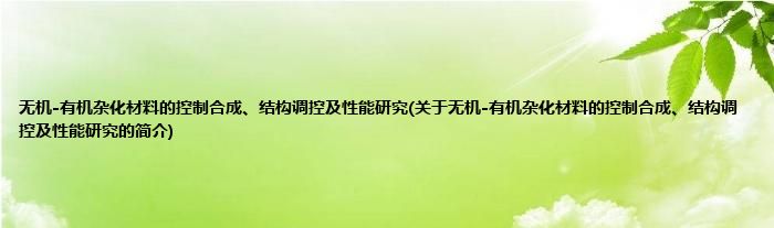 本文关于无机-有机杂化材料的控制合成、结构调控及性能研究的简介就讲解完毕,希望对大家有所帮助。