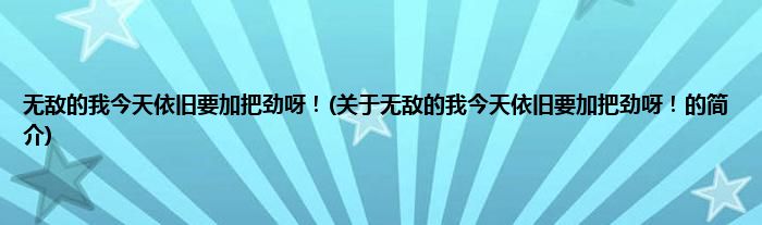 大家好,无敌的我今天依旧要加把劲呀!,关于无敌的我今天依旧要加把劲呀!的简介很多人还不知道,现在让我们一起来看看吧!
