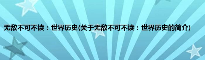 本文关于无敌不可不读:世界历史的简介就讲解完毕,希望对大家有所帮助。