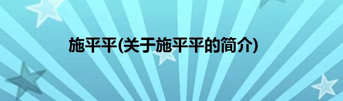 本文关于施平平的简介就讲解完毕,希望对大家有所帮助。