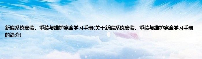 大家好,新编系统安装、重装与维护完全学习手册,关于新编系统安装、重装与维护完全学习手册的简介很多人还不知道,现在让我们一起来看看吧!