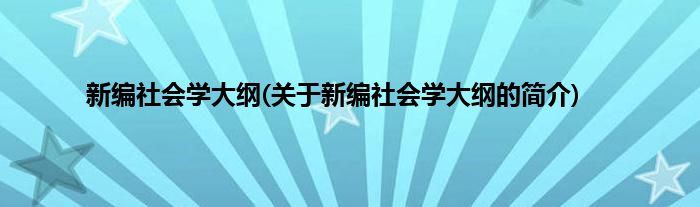 本文关于新编社会学大纲的简介就讲解完毕,希望对大家有所帮助。