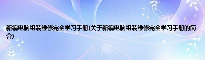 本文关于新编电脑组装维修完全学习手册的简介就讲解完毕,希望对大家有所帮助。