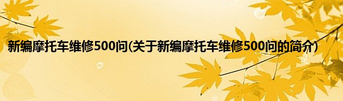 新编摩托车维修500问(关于新编摩托车维修500问的简介)