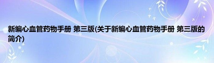 大家好,新编心血管药物手册 第三版,关于新编心血管药物手册 第三版的简介很多人还不知道,现在让我们一起来看看吧!