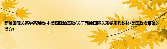 本文关于新编国际关系学系列教材·美国政治基础的简介就讲解完毕,希望对大家有所帮助。