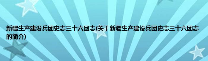 本文关于新疆生产建设兵团史志三十六团志的简介就讲解完毕,希望对大家有所帮助。