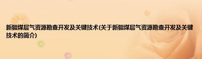 大家好,新疆煤层气资源勘查开发及关键技术,关于新疆煤层气资源勘查开发及关键技术的简介很多人还不知道,现在让我们一起来看看吧!