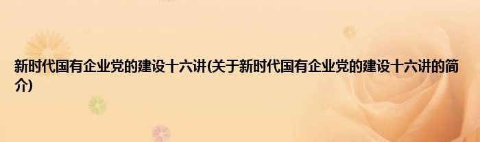 本文关于新时代国有企业党的建设十六讲的简介就讲解完毕,希望对大家有所帮助。