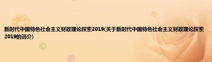 本文关于新时代中国特色社会主义财政理论探索2019的简介就讲解完毕,希望对大家有所帮助。