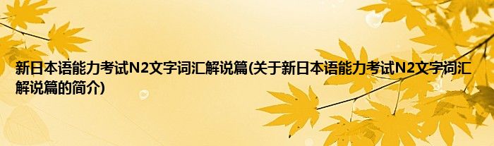 本文关于新日本语能力考试N2文字词汇解说篇的简介就讲解完毕,希望对大家有所帮助。