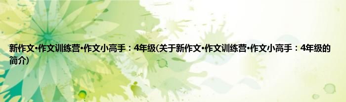 大家好,新作文·作文训练营·作文小高手:4年级,关于新作文·作文训练营·作文小高手:4年级的简介很多人还不知道,现在让我们一起来看看吧!