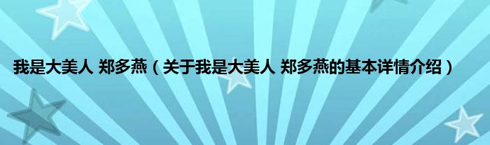 本文关于我是大美人 郑多燕的基本详情介绍就讲解完毕,希望对大家有所帮助。