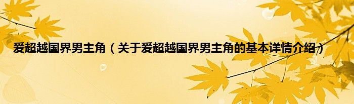 爱超越国界男主角(关于爱超越国界男主角的基本详情介绍)