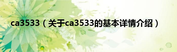 大家好我是小蝌蚪,ca3533,关于ca3533的基本详情介绍很多人还不知道,那么现在让我们一起来看看吧!
