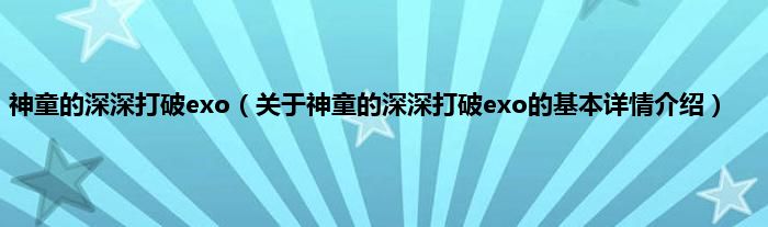本文关于神童的深深打破exo的基本详情介绍就讲解完毕,希望对大家有所帮助。
