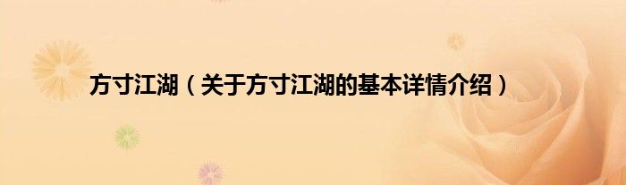 本文关于方寸江湖的基本详情介绍就讲解完毕,希望对大家有所帮助。