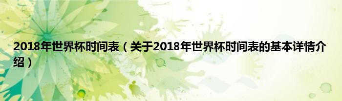 本文关于2018年世界杯时间表的基本详情介绍就讲解完毕,希望对大家有所帮助。