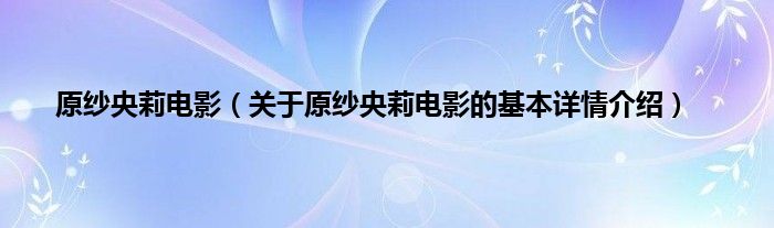 本文关于原纱央莉电影的基本详情介绍就讲解完毕,希望对大家有所帮助。
