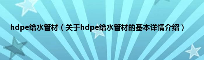 本文关于hdpe给水管材的基本详情介绍就讲解完毕,希望对大家有所帮助。