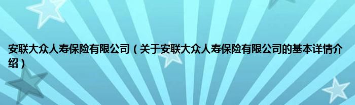 本文关于安联大众人寿保险有限公司的基本详情介绍就讲解完毕,希望对大家有所帮助。