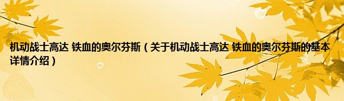 本文关于机动战士高达 铁血的奥尔芬斯的基本详情介绍就讲解完毕,希望对大家有所帮助。