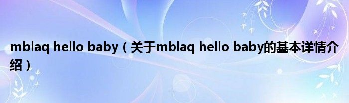 本文关于mblaq hello baby的基本详情介绍就讲解完毕,希望对大家有所帮助。