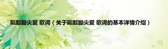 本文关于踮起脚尖爱 歌词的基本详情介绍就讲解完毕,希望对大家有所帮助。