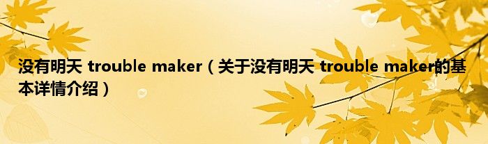 没有明天troublemaker(关于没有明天troublemaker的基本详情...