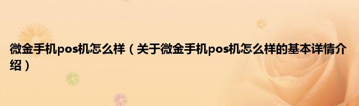 微金手机pos机怎么样(关于微金手机pos机怎么样的基本详情介绍)