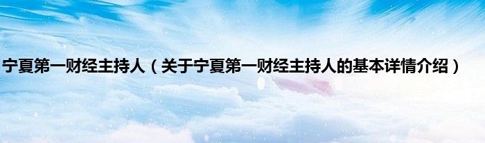 宁夏第一财经主持人(关于宁夏第一财经主持人的基本详情介绍)