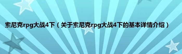 本文关于索尼克rpg大战4下的基本详情介绍就讲解完毕,希望对大家有所帮助。