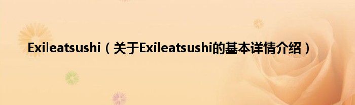 大家好我是小蝌蚪,Exileatsushi,关于Exileatsushi的基本详情介绍很多人还不知道,那么现在让我们一起来看看吧!