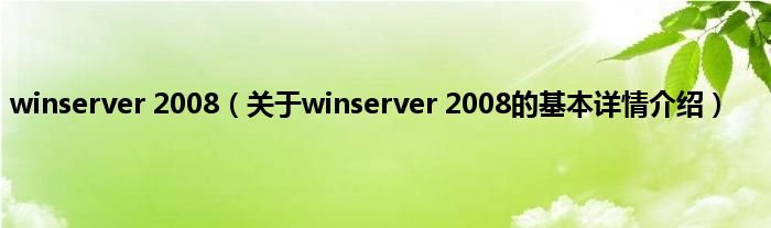 winserver 2008(关于winserver 2008的基本详情介绍)