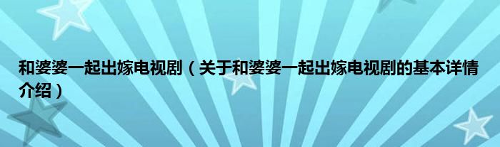 和婆婆一起出嫁电视剧(关于和婆婆一起出嫁电视剧的基本详情介绍)