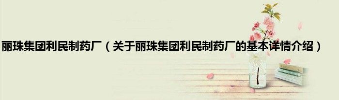 本文关于丽珠集团利民制药厂的基本详情介绍就讲解完毕,希望对大家有所帮助。