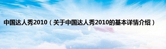 本文关于中国达人秀2010的基本详情介绍就讲解完毕,希望对大家有所帮助。