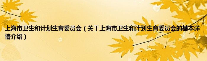 本文关于上海市卫生和计划生育委员会的基本详情介绍就讲解完毕,希望对大家有所帮助。