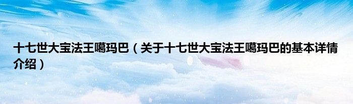 本文关于十七世大宝法王噶玛巴的基本详情介绍就讲解完毕,希望对大家有所帮助。