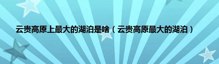以上就是【云贵高原上最大的湖泊是啥,云贵高原最大的湖泊】相关内容。