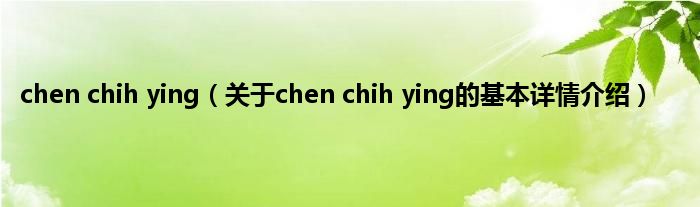 本文关于chen chih ying的基本详情介绍就讲解完毕,希望对大家有所帮助。